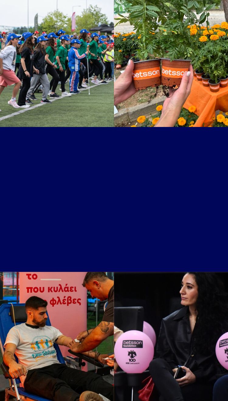 H Betsson από την πρώτη μέρα της λειτουργίας της στην Ελλάδας είναι αρωγός στον ελληνικό αθλητισμό. Εκτός από αυτό όμως, θέλει να προσφέρει στο κοινωνικό σύνολο και να είναι πάντα δίπλα στους ανθρώπους που έχουν ανάγκη στήριξης. Το Betsson Foundation έχει ως σκοπό να υλοποιεί δράσεις που προσφέρουν βοήθεια αλλά πάνω απ΄ όλα χαμόγελα στους αφανείς ήρωες της καθημερινότητάς μας και σε εκείνους που δεν έχουν προβληθεί όσο θα έπρεπε.