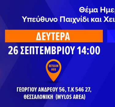 Στο Betsson Hub στην Θεσσαλονίκη έλαβε χώρα στις 26 Σεπτεμβρίου η Ημερίδα με θέμα το Υπεύθυνο Παιχνίδι και τη Χειραγώγηση Παιχνιδιών.
