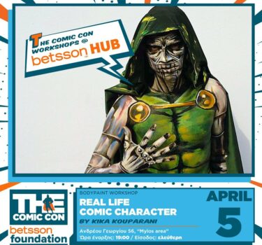 Σε συνεργασία με το «The Comic Con», το Betsson Foundation θα πραγματοποιήσει επιπλέον τρεις εκδηλώσεις στο Betsson Hub (Γ. Ανδρέου 56, Mylos Area) με θέματα που σχετίζονται με τη φιλοσοφία των κόμικ. Συγκεκριμένα, στις 5 Απριλίου και ώρα 19:00, θα πραγματοποιηθεί το πρώτο workshop με τίτλο: «Ζωντανεύοντας τους ήρωες».